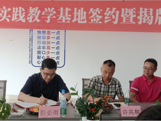 彭必雨经理与许共和董事长为校级实践教学基地揭牌
