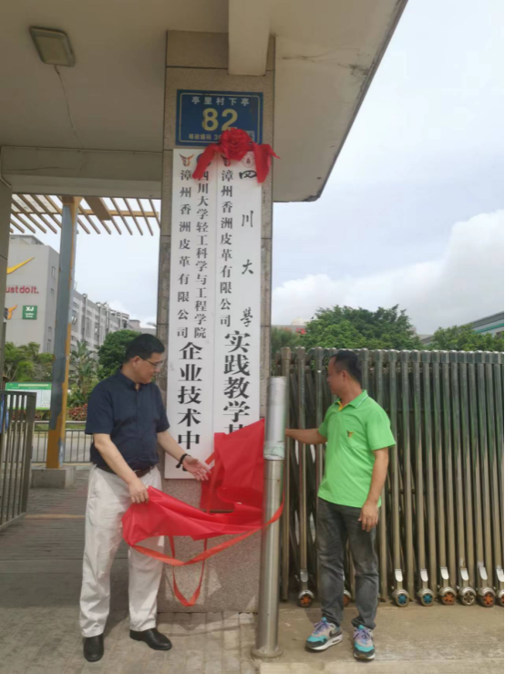 轻化工程专业实践教学基地揭牌仪式在赤湖皮革工业园隆重举行