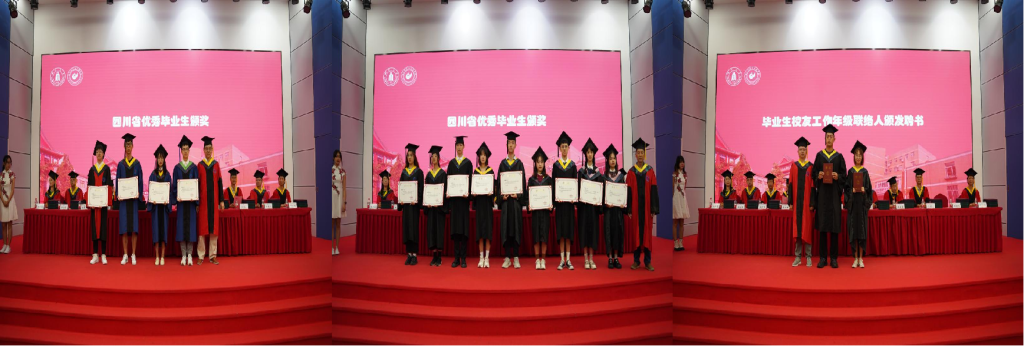 公司党委李天富书记宣读《太阳成集团tyc33455cc2022届省优秀毕业生名单》和《2022届毕业生员工工作年级联络人聘任决定》,李天富书记、彭必雨经理、周建飞副经理分别为四川省优秀毕业生和员工联络人颁奖。