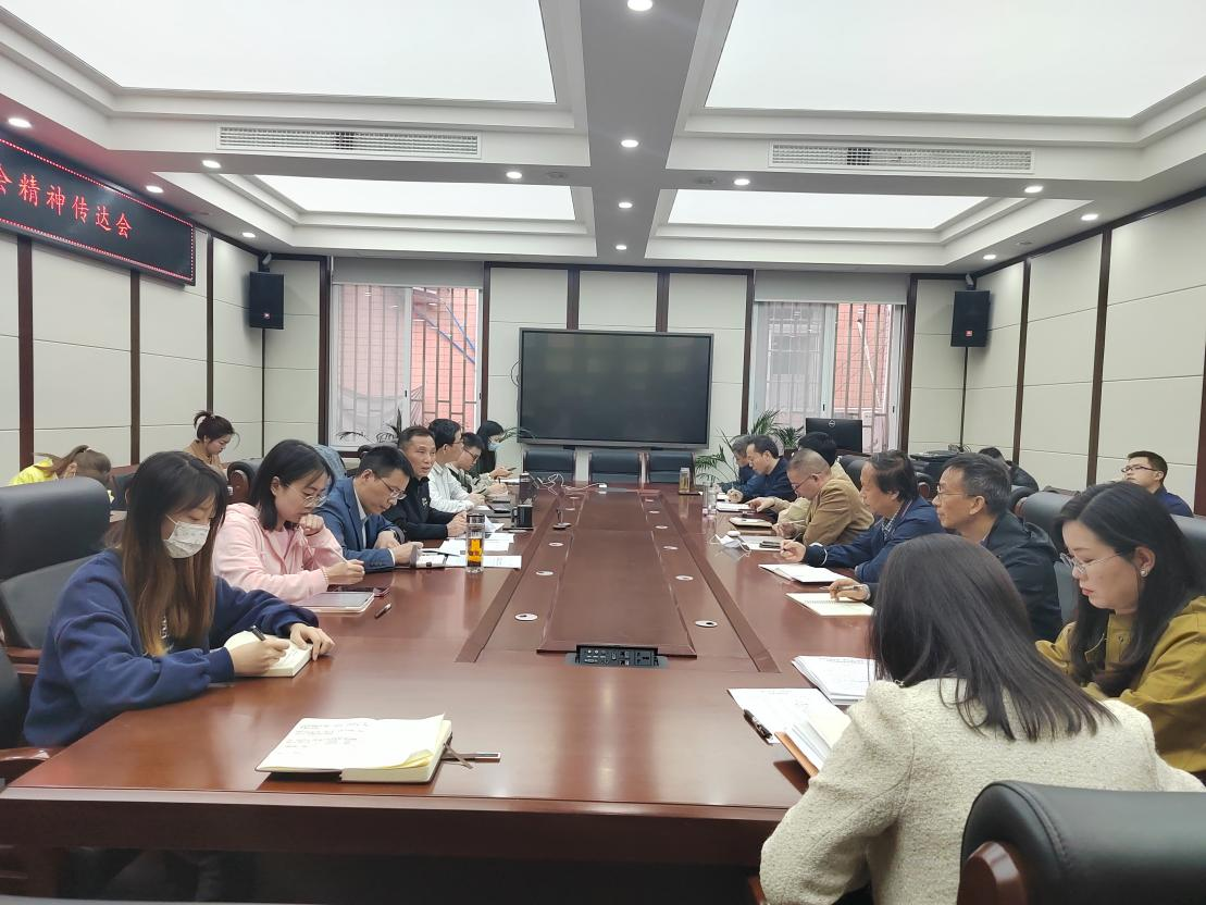 2022年10月9日下午,太阳成集团tyc33455cc在纺工附楼205会议室组织开展搜狗第九次党代会精神学习传达会。公司班子成员、党委委员、党支部书记、科级干部等出席会议。会议由公司党委李天富书记主持。