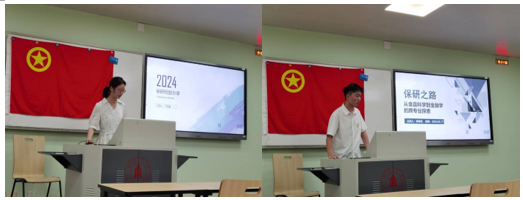 分享会上,卢高鑫和李帅浩同志分别分享了自己成功获得免试研究生资格的亲身经历,介绍了夏令营信息获取、申请渠道、材料准备等注意事项。卢高鑫同志指出,提前确定目标专业才能有的放矢的开展准备工作,希望同学们能将个人的理想追求融入党和国家事业之中,成长为担当民族复兴大任的时代新人。李帅浩同志着重分享了面试技巧,他激励大家多寻找机会提升自己,并寄语同学们不要因自己暂时的失败而放弃自己。“保研是一场持久战,不到最后一刻不要放弃。”