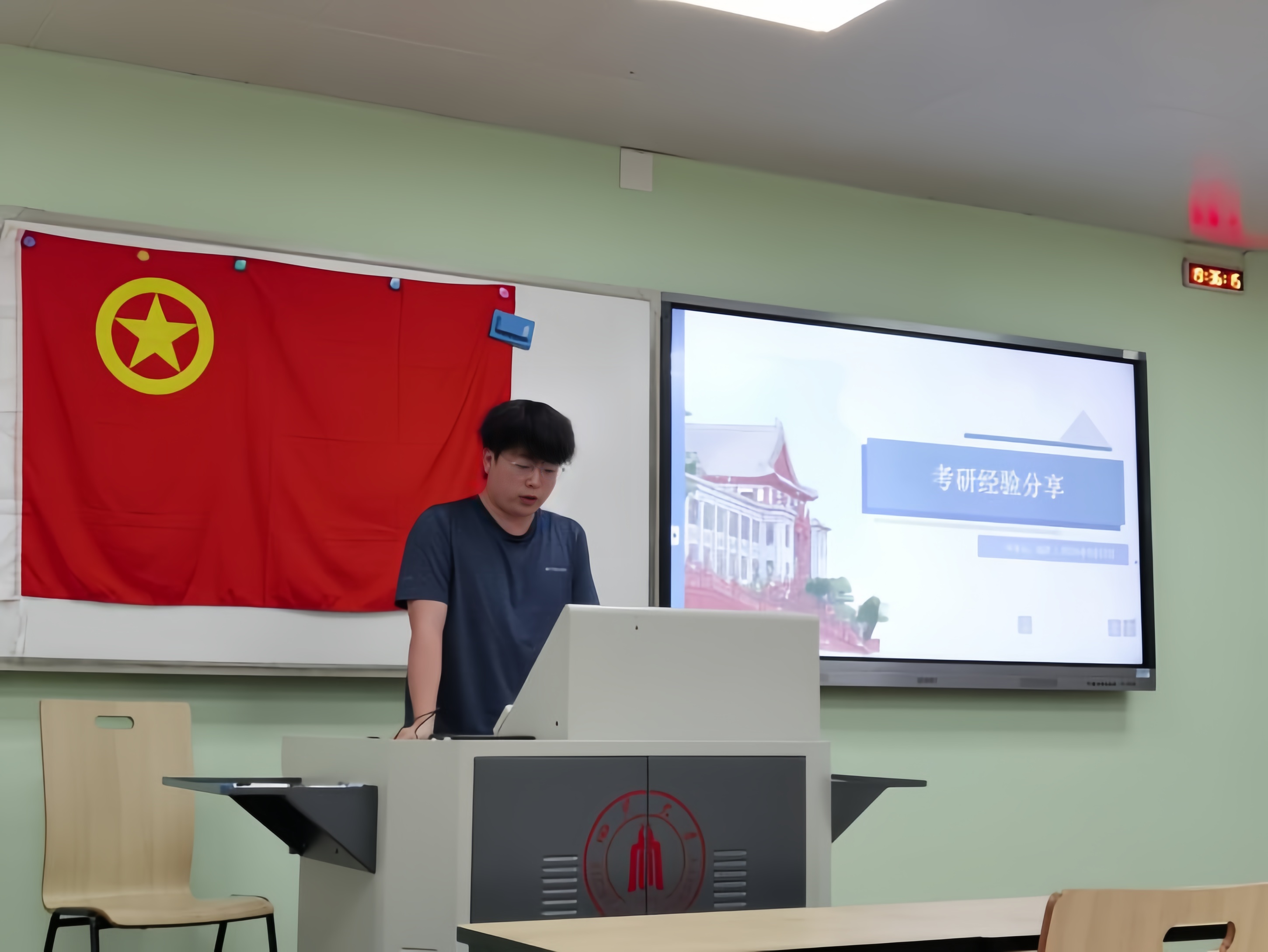 刘洋同志从了解考研、院校选择、资料获取、如何备考、心态调整、整体策略等方面分享了考研经验,强调了时间管理在学习过程中的重要性。