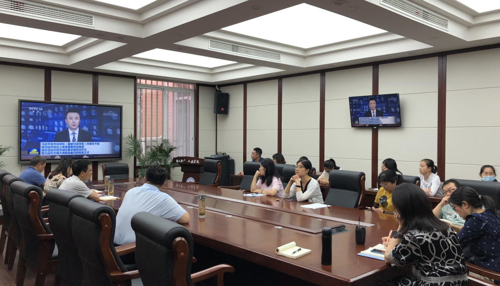 2021年9月24日,公共服务教工党支部在纺工附楼205会议室开展支部大会暨师德专题教育学习。在政治理论学习环节,公共服务教工党支部全体成员视频学习了习近平在中央党校(国家行政公司)中青年干部培训班开班式上的重要讲话精神。